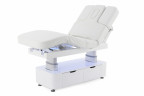 Ложемент разделен на две секции, что делает функционал более широким. Обивка — мягкий винил-люкс с 6-сантиметровым слоем поролона под ним, что делает процедуры более комфортными.